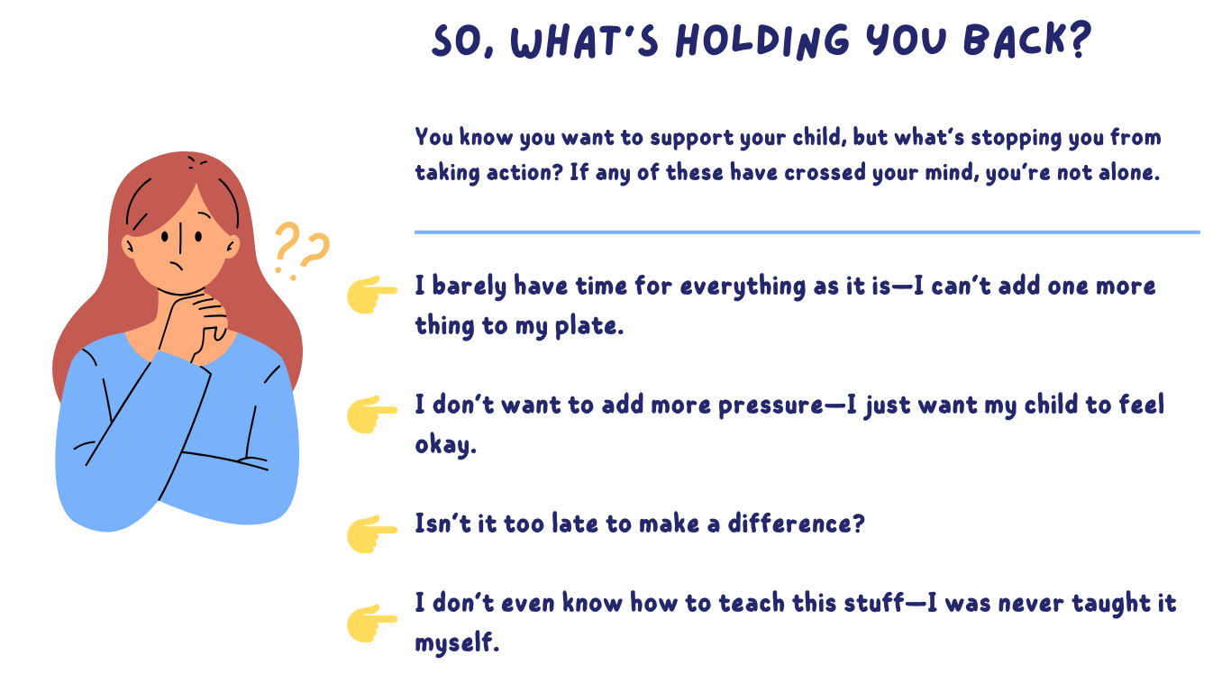 Excellent question. I am a primary school teacher but I have designed the course to be helpful to parents of children from babies upwards. It is never too early or late to reflect on your mindset and explore beliefs which may be holding you back.