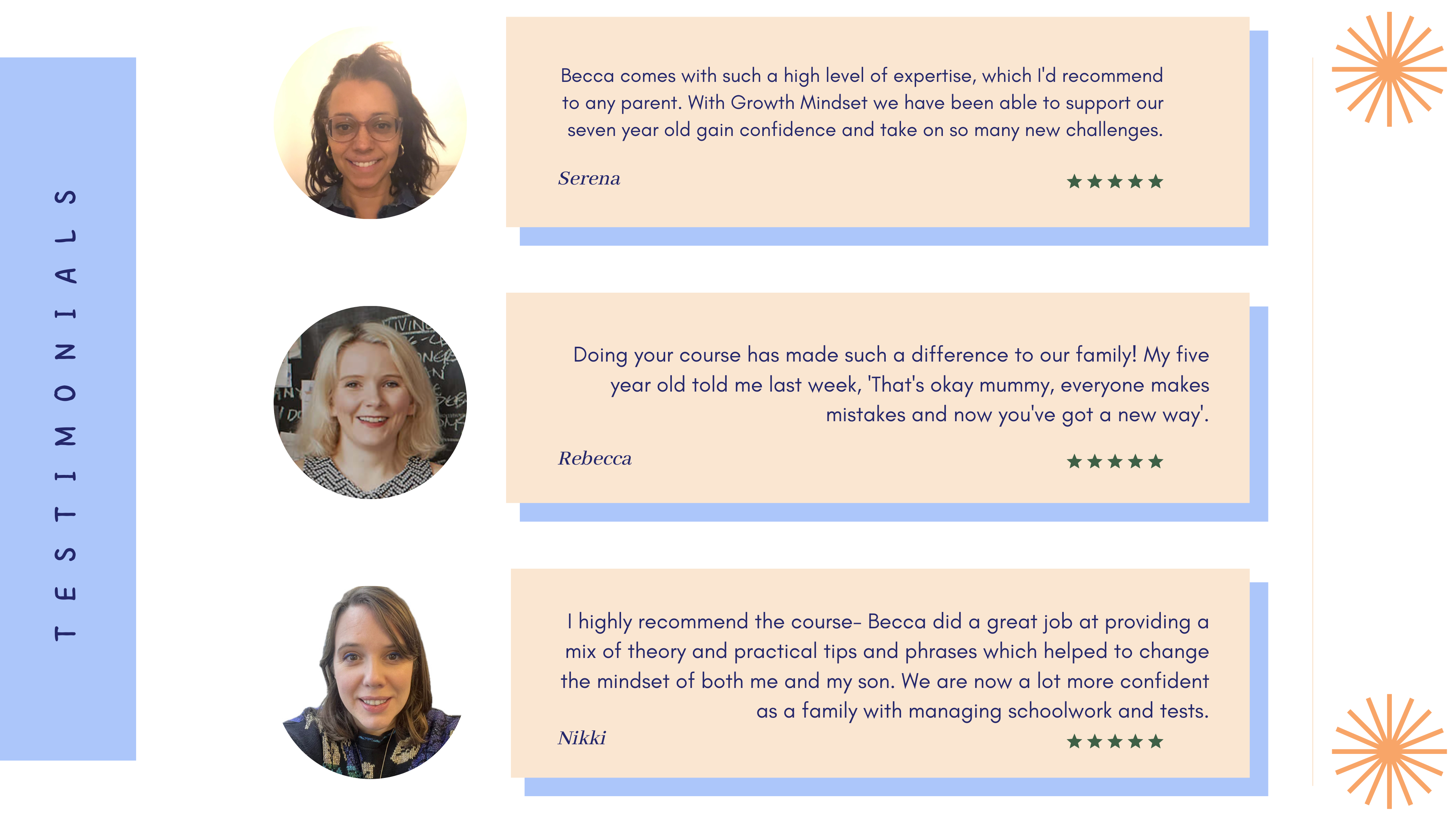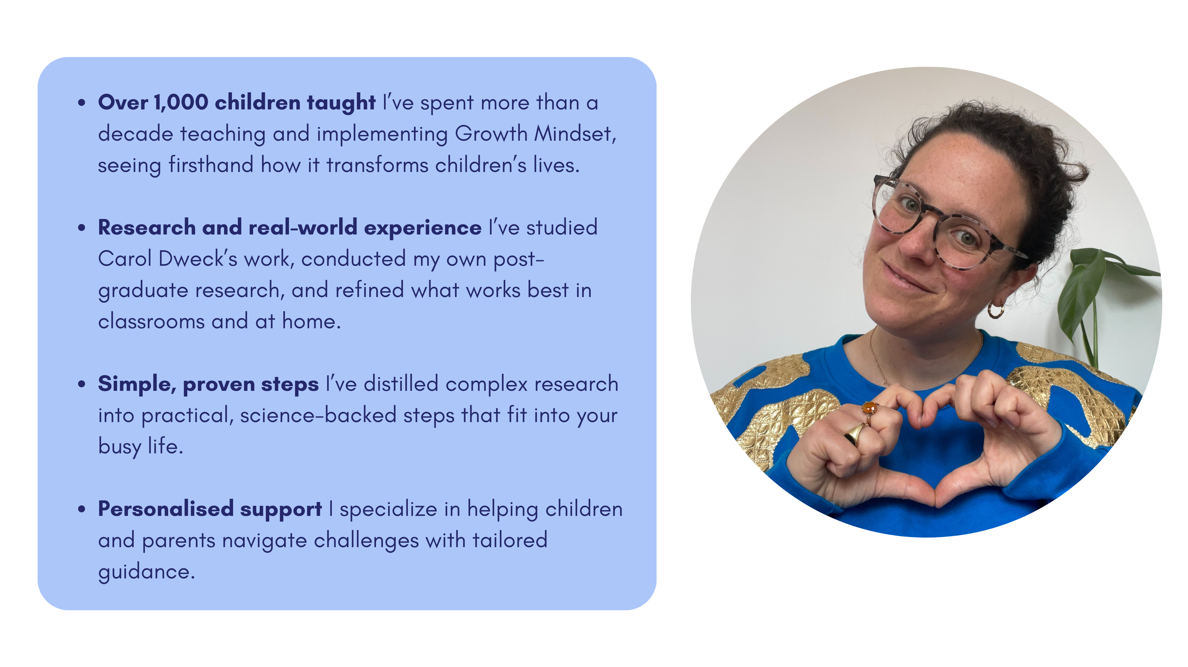I proudly stand behind my course and products. Hundreds of children and parents have thrived after learning from my Growth Mindset programmes.